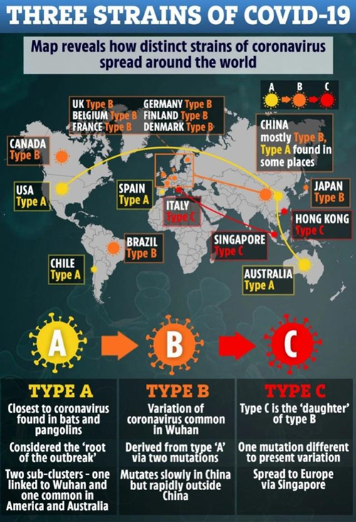 英國(guó)科學(xué)家研究發(fā)現(xiàn),新型冠狀病毒在世界各地傳播的過程中變異成了3種不同的毒株,而且“正在快速突變,以適應(yīng)不同人群中的免疫系統(tǒng)抵抗力”。研究還表明,在一些美國(guó)人身上發(fā)現(xiàn)的病毒變體與蝙蝠中發(fā)現(xiàn)的病毒關(guān)系最密切。