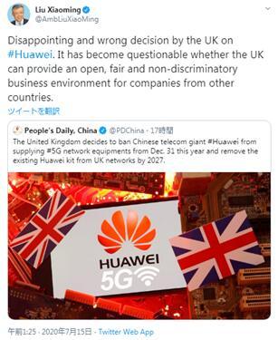 中國(guó)駐英國(guó)大使劉曉明表示,朝令夕改、禁用華為不僅會(huì)損害英國(guó)標(biāo)榜的開放、宜商、自由、透明的形象,也將損害英國(guó)獨(dú)立自主的國(guó)家形象。