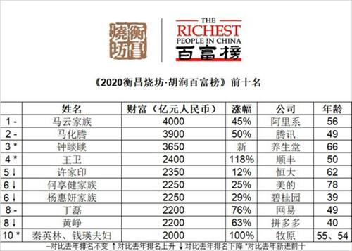 2020胡潤百富榜:馬云捐1000億仍是首富
