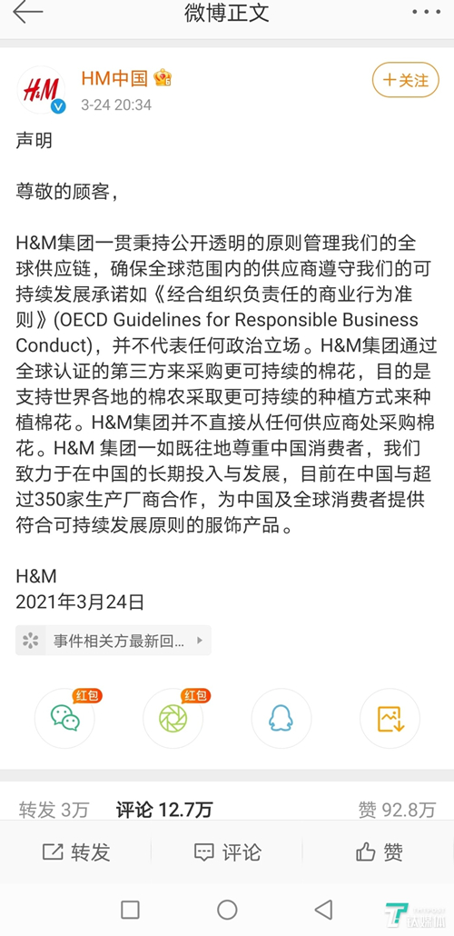 H&M的回應(yīng)又引發(fā)了官媒和網(wǎng)友的眾怒。