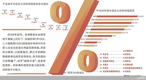 “支柱二”則是通過設(shè)立全球最低公司稅率來管控各國之間的財(cái)稅競爭。此前,七國集團(tuán)成員國曾達(dá)成協(xié)議,支持把全球最低企業(yè)稅率設(shè)為15%。