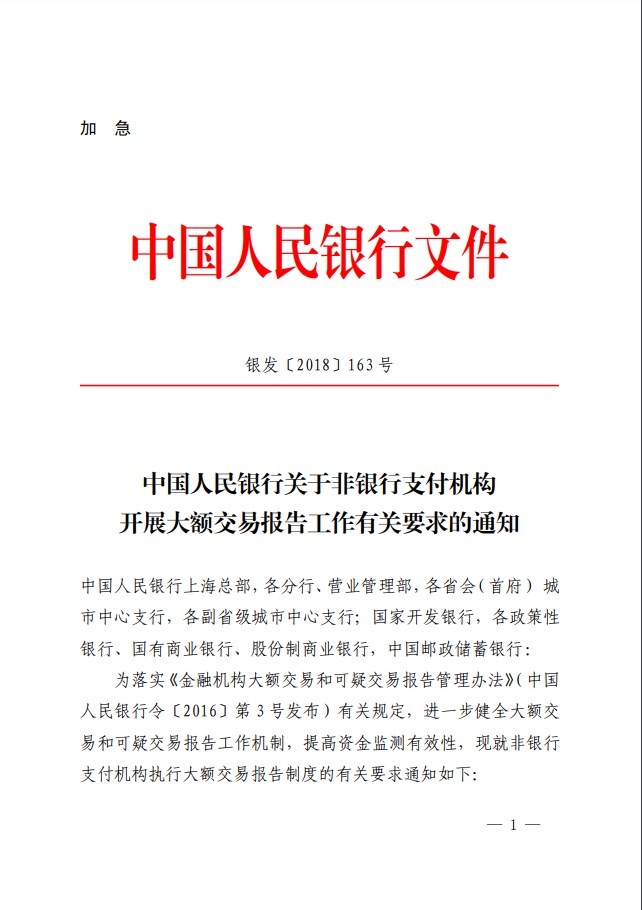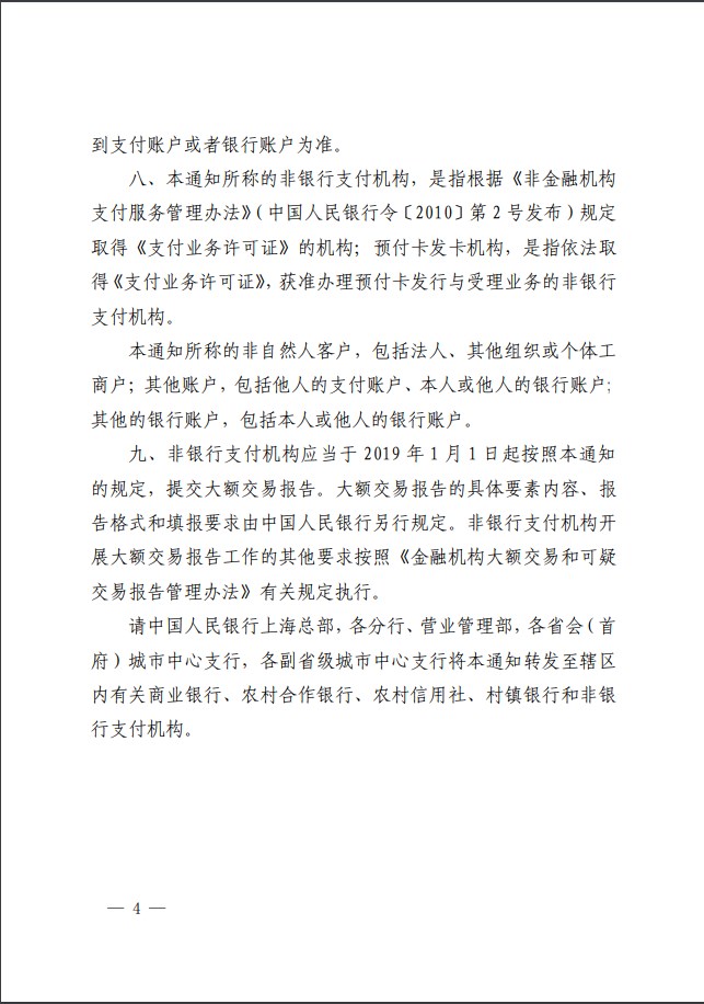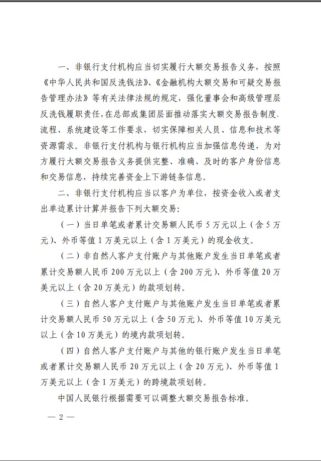 以下為《中國人民銀行關于非銀行支付機構(gòu)開展大額交易報告工作有關要求的通知》: