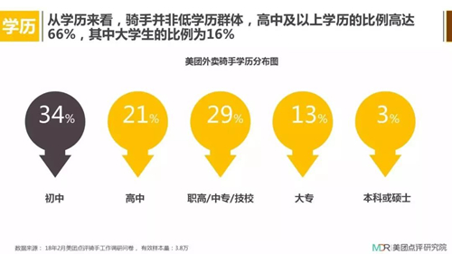 從美團(tuán)點(diǎn)評(píng)研究院發(fā)布的《2018年外賣騎手群體研究報(bào)告》中我們可以看到,從事騎手職業(yè)的人通常來自小城市且文化水平偏低,這就導(dǎo)致騎手在與消費(fèi)者交流中常因?yàn)槿狈贤记僧a(chǎn)生爭(zhēng)執(zhí)。也親眼見過騎手去咖啡店取餐,因?yàn)閷?duì)咖啡不了解,普通話又不好,溝通浪費(fèi)了很長時(shí)間,過程中遭店員頻繁白眼。