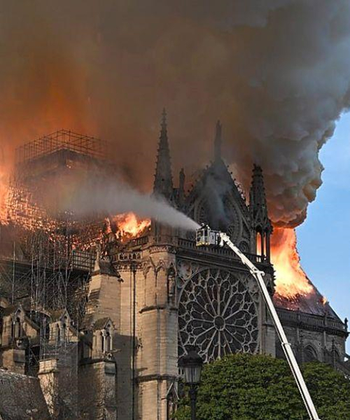 消防部門使用高壓水槍滅火,在經(jīng)過(guò)4個(gè)多小時(shí)救援后,火勢(shì)逐漸冷卻得以控制,巴黎圣母院的主體結(jié)構(gòu)得以保存和保護(hù)。