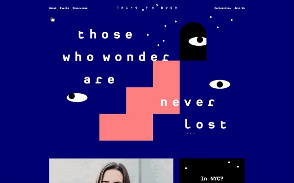 這不是某一種類別的導(dǎo)航,而是一系列的導(dǎo)航方式。往往用在作品集網(wǎng)站上,設(shè)計師可以天馬行空發(fā)揮創(chuàng)意。這種導(dǎo)航的特點往往是拋棄傳統(tǒng)導(dǎo)航,把導(dǎo)航欄里的條目拆分到頁面各處。角落往往是最受歡迎的。