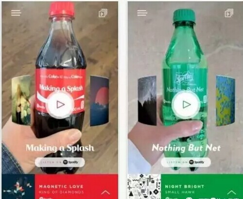 不過最近 ,可口可樂又放大招,和流媒體音樂平臺(tái)Spotify合作以AR技術(shù)打造喝可樂聽音樂的科技感享受。用戶通過專有App掃描瓶身就能聽到189種Spotify列表上的音樂,扭轉(zhuǎn)瓶身還能調(diào)解音樂播放順序。在技術(shù)浪潮推動(dòng)下,不知道又要有多少飲料搭肩黑科技刷新體驗(yàn),看來值得期待。