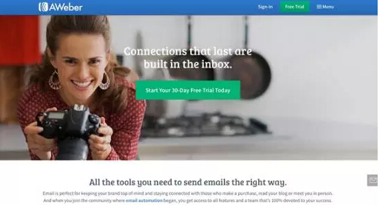 最近,Aweber通過(guò)更新主頁(yè)設(shè)計(jì),轉(zhuǎn)化率得到了明顯的提升。正如圖中banner文字描述的那樣:你和用戶的連接,一切從收件箱開(kāi)始。