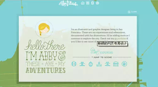 3、關(guān)于作品集類型的創(chuàng)意網(wǎng)站布局,如下面的網(wǎng)站,是一個作者的原創(chuàng)作品收藏。如果你沒有走進這個網(wǎng)站,看到小編給的這張圖片是否覺得它很普通,色彩也顯得暗淡,其實這個網(wǎng)站的布局非常有意思,從你進網(wǎng)站開始,頁面就會跟著你的鼠標(biāo)所指的位置移動,點擊你想要了解的內(nèi)容就可進入詳情頁。而網(wǎng)站左上角的心形則是整個網(wǎng)站的導(dǎo)航欄,進入退出一鍵搞定。